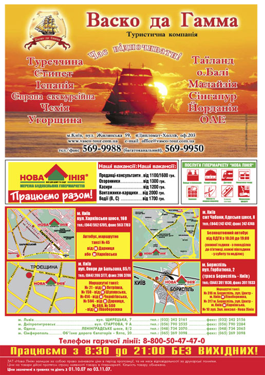 Цены указаны в гривнях и действуют с 01.10.2007 по 03.11.2007.