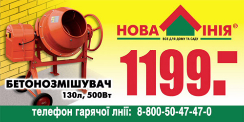 Только в марте в гипермаркетах "Новая Линия" бетономешалка на 130л. по супернизкой цене.
