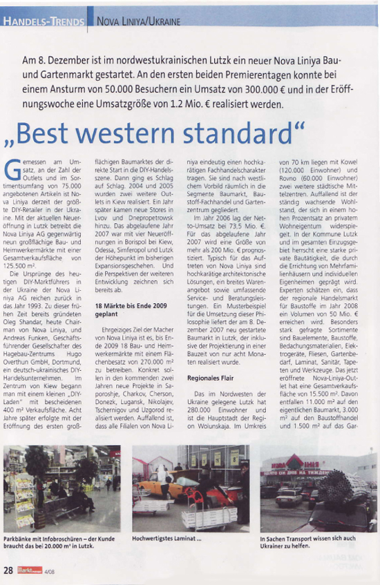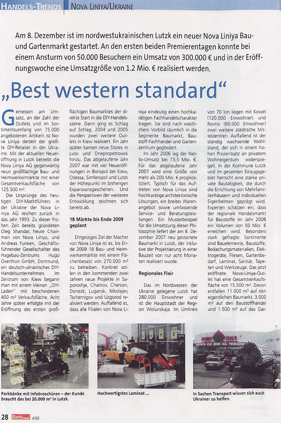 1. В очередном выпуске известного Западного журнала «ДIY-market» вышла статья о сети строительных гипермаркетов «Новая Линия». Олег Леонидович, считаете ли Вы данную публикацию признанием «Новой Линии» сильнейшим игроком на рынке строительного ритейла в Украине?