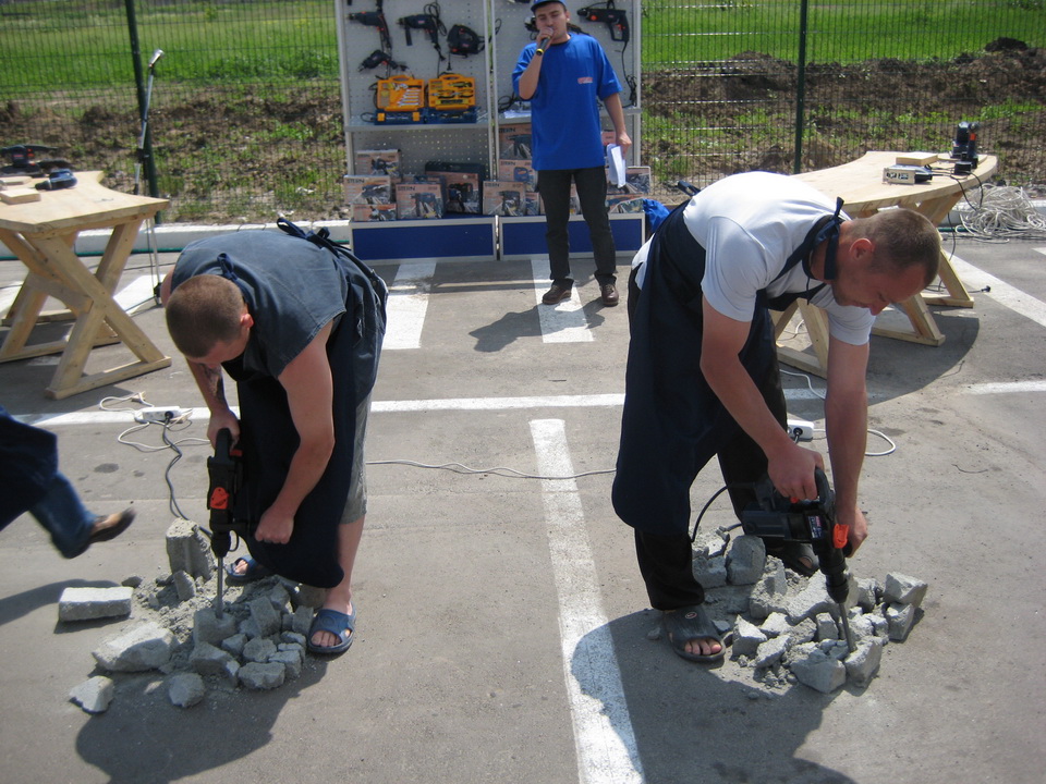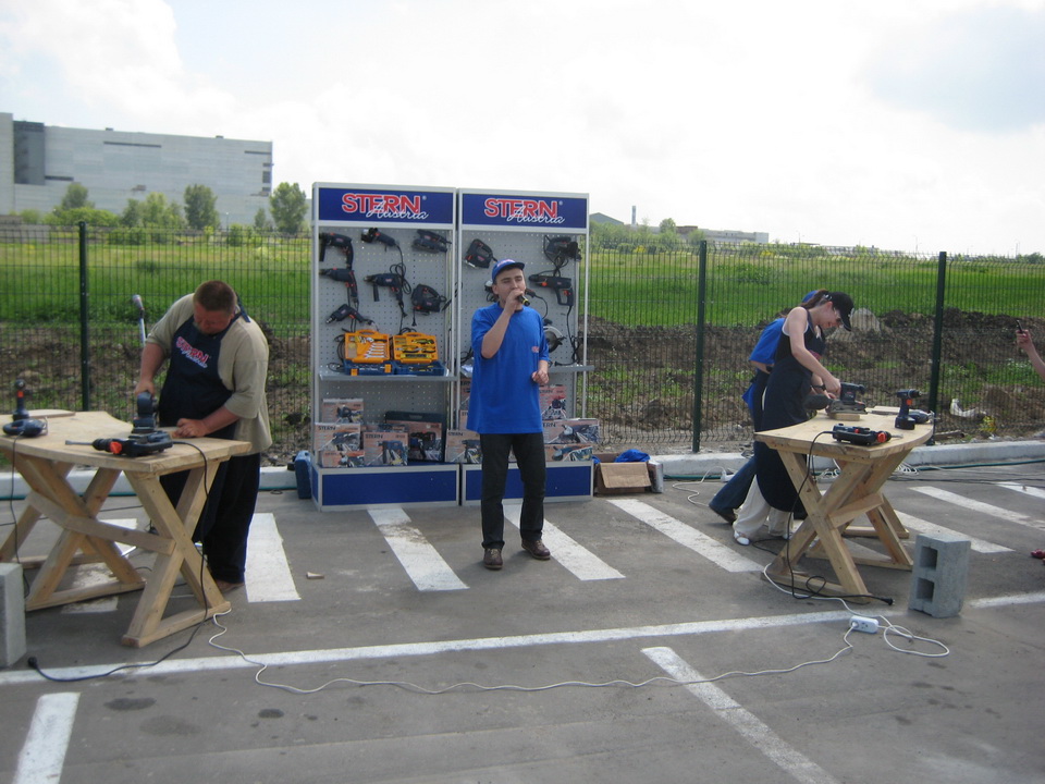 Покупатели торгового центра могли принять участие в увлекательных конкурсах. Отличившиеся в конкурсах получили электроинструмент в подарок.