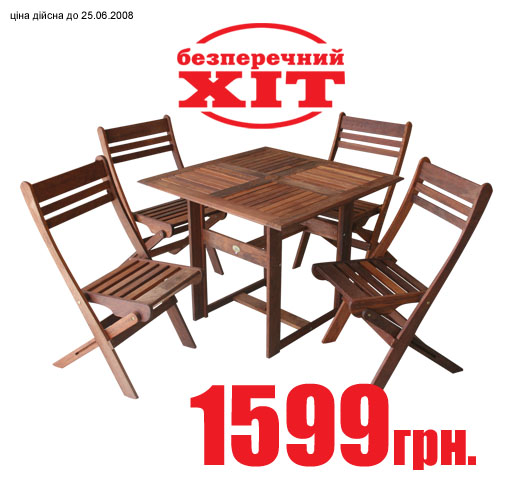 и Lindeman (круглый стол d 1100мм. + 4 складных стула).