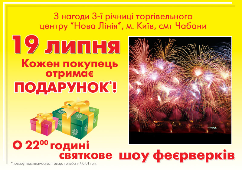 Третья годовщина торгового центра "Новая линия" Киев, пгт. Чабаны, Одесское шоссе 8