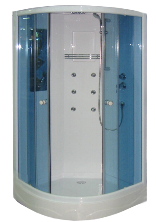 3.В гидромассажном боксе уже есть боковые стенки изготовленые из легкого и крепкого пластика, который покрыт специальной водоотталкивающей поверхностью, в стойки вмонтированы 6 гидромассажных форсунок , которые создают ефект гидромассажа. Гидромассаж способствует поднятию тонуса, стимуляции обменных процессов в организме, а также ефективно снимает усталость в конце рабочего дня. Кроме ручного душа (подвижного) есть также и большая стационарная лейка, которая вмонтирована в верхнюю часть бокса.