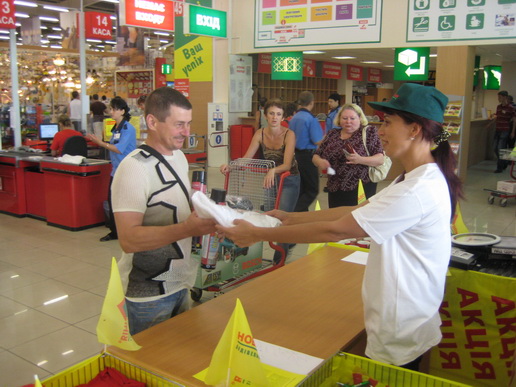 26.07.2008 по случаю Дня работника торговли, директор «Новой Линии» г.Запорожья Котляренко В.А. поздравил весь торговый персонал с профессиональным праздником и вручил каждому сотруднику подарок!