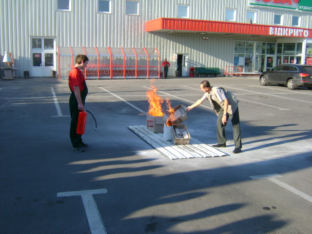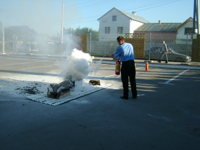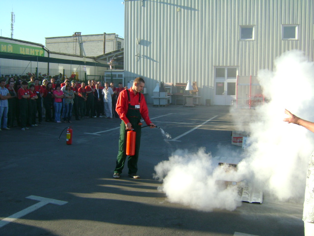 Работники на практике могли попробовать затушить пожар огнетушителем. Тушение пожаров осуществляется в основном противопожарными профессиональными подразделениями. Однако каждый работник должен уметь ликвидировать загорания и при необходимости участвовать в борьбе с пожаром.