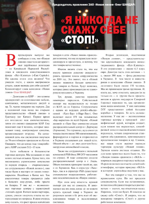 "Я никогда не скажу себе стоп!" - говорит глава правления ЗАО "Новая Линия" Олег Шандар