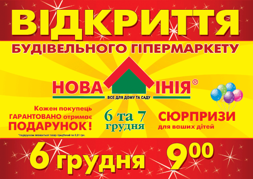 6 декабря 2008 года в городе Кременчуг произойдёт открытие 13-го гипермаркета "Новая Линия"!