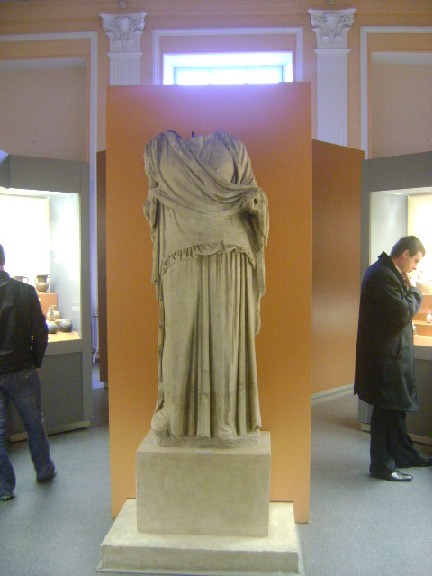 Лучшие образцы античной скульптуры выставлены в вестибюле здания, специально построенного для музея в 1883 году. В первых двух залах демонстрируются материалы, охватывающие огромный период времени: от появления человека - до второго тысячелетия до н.э. Особый интерес представляют находки из поселений и могильников культур Гумельница, Триполье, Усатово, подкурганных погребений и кладов бронзы. Культура скифских племен, обитавших в это время в степях Причерноморья, представлена материалами из поселений и захоронений, предметами вооружения, бронзовыми котлами и другой утварью, украшениями. К началу первого тысячелетия н.э. скифов потеснили сарматы, а в III-IV вв. н.э. сложилось объединение племен, представленное предметами Черняховской культуры. Период IX-XIV вв. отражен в материалах из поселений и городов Киевской Руси, Белгорода, Кафы-Феодосии, острова Березань. В "Золотой кладовой" музея экспонируются подлинные вещи из драгоценных металлов, древнейшие из них относятся к началу второго тысячелетию до н.э. Привлекают внимание украшения из скифских и сарматских могильников, средневековых погребений кочевников, изделия славянских умельцев. Из 50 тысяч монет, хранящихся в музее на обозрение выставлены наиболее редкие из золота и серебра, выпускавшиеся в Древней Греции, Риме, Византии. В разделе русской нумизматики демонстрируются монеты начиная с первой - "златника" князя Владимира и кончая чеканкой последних царей, а также мемориальные медали. Собрание египетских древностей - третье по величине в бывшем СССР. Здесь интерес представляют деревянные и каменный саркофаги, погребальный инвентарь, каменные плиты и фрагменты папирусов с иероглифами.
