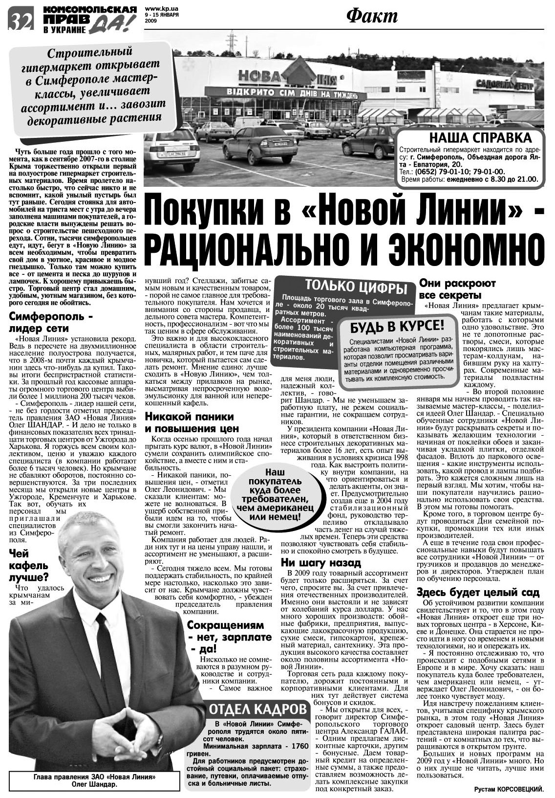 Председатель Правления ЗАО "Новая линия" Шандар О.Л. встретился в Симферополе с представителями масс-медиа и поделился планами компании на 2009г.