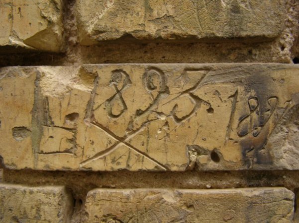 На каждом кирпичике паттерны солдаты, которые в свое время охраняли Лысогорский форт, оставили свои «визитки». Стоять на часах возле какой-нибудь паттерны было довольно-таки жутко и скучно. Стоит присмотреться к древним кирпичам стен, и не только потому, что из них мастерски выложены стены тоннелей: тут, около тяжелых, окованных железом ворот многие годы стояли часовые. От нечего делать они выцарапывали на кирпичах надписи - кто, откуда и когда ему довелось служить.