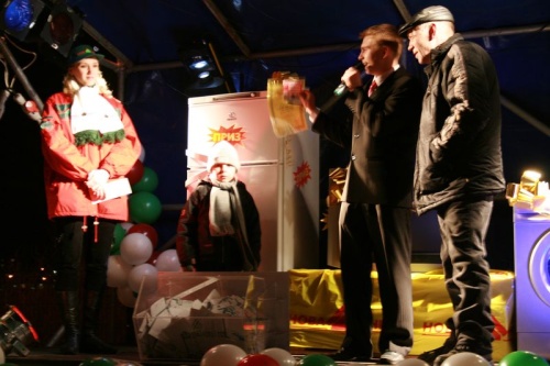Вечером, в 20.30 началось самое долгожданное событие дня – розыгрыш суперпризов! Желающих получить заветные призы пришло не мало! Розыгрыш холодильника, телевизора и стиральной машины вызвали интерес у многих жителей города и области.