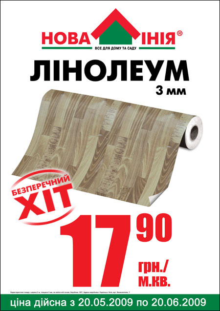Национальная сеть строительных гипермаркетов «Новая Линия» представляет Линолеум Палуба, украинского производства по специальной цене 17,90 грн за м.кв.