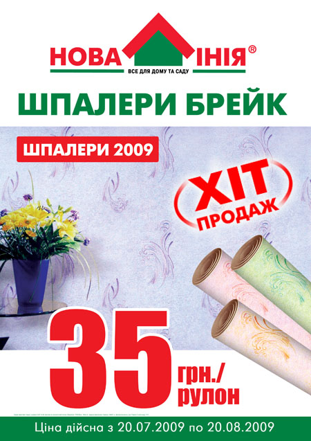 Национальная сеть строительных гипермаркетов «Новая Линия» представляет виниловые обои Брейк на бумажной основе по суперцене 35 грн. за рулон.