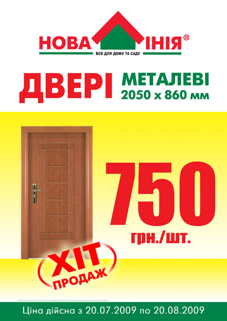 Металлические двери – это оптимальное сочетание защиты технологии и дизайна. Национальная сеть строительных гипермаркетов «Новая Линия» представляет двери металические с ручкою по суперцене 750 грн.