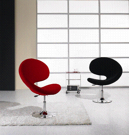 Преимущество кресла в том, что оно предназначено для оборудования зон отдыха в бытовых или общественных помещениях. Поддон кресла и подьемник изготовленны из металла, покрытого хромом. Под сиденьем находится пресованая фанера. В качестве прокладочного слоя использован синтепон. Обивка тканевая, двух цветов: красного и черного.
