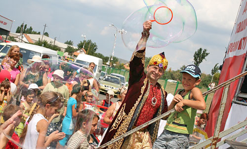 - Маленьких посетителей также ждали сюрпризы, каждый ребенок получил в подарок надувной шарик и фирменный флажок от Новой Линии. Дети со своими родителями смогли насладиться сказочным зрелищем — шоу мыльных пузырей.