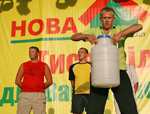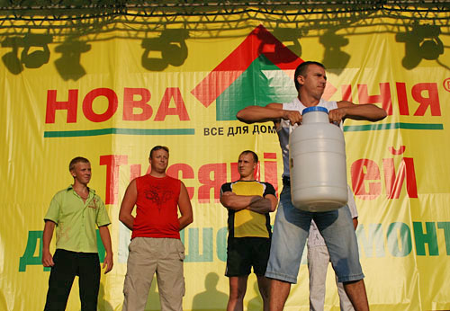 Самые крепкие посетители также получили возможность продемонстрировать свою силу в конкурсе «Богатыри», в котором участникам нужно было за 1 минуту поднять, как можно больше раз, 30 килограммовую канистру наполненную водой.