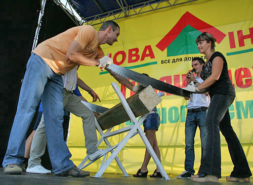 Также посетители принимали участие в конкурсах, в которых им приходилось на скорость надувать басейны и пилить бревна. А самые ловкие раскодировали сейфы.