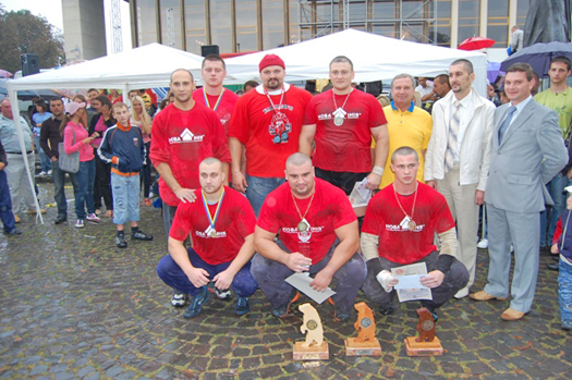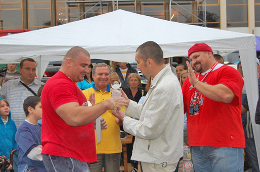 Победил в турнире ужгородский силач Сергей Олеоленко. Его наградили денежным призом, медалью и дипломом. А от главного спонсора – нашей компании «Новая Линия», директор ужгородского гипермаркета вручил Сергею специальный приз – фирменную хрустальную статуэтку, символизирующую лидерство и стремление к покорению новых высот.