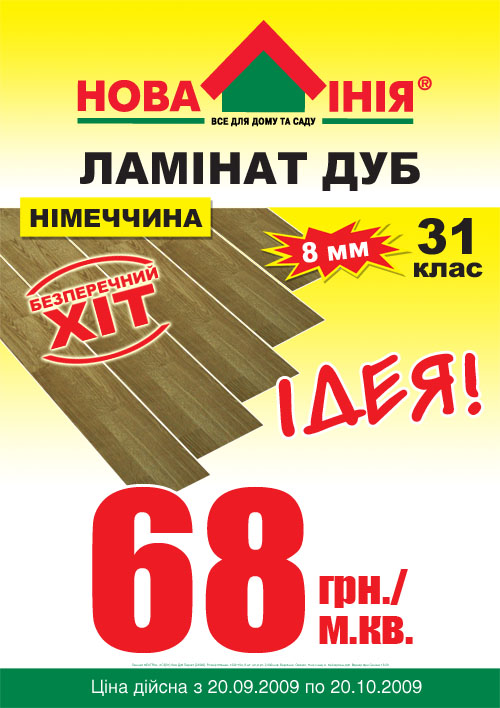 Национальная сеть декоративно-строительных гипермаркетов «Новая Линия» предлагает вашему вниманию Ламинат CLASSEN расцветки дуб, по супер цене 68 гривен за м.кв.