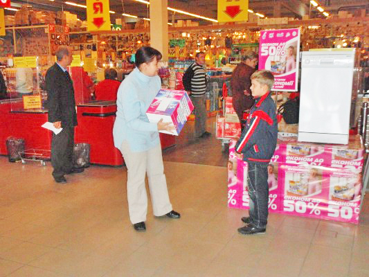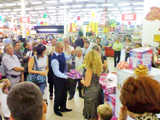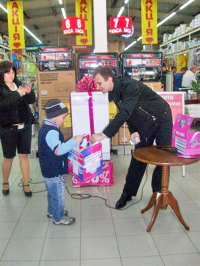 В торговых центрах собралось большое количество желающих получить заветный приз. Но для начала провели розыгрыш дополнительных и полезных призов от Reckitt Benckiser. Купоны доставали исключительно дети (естественно не бесплатно - детский труд оплачивался обильным количеством шоколадок). И наконец-то наступил долгожданный момент, розыгрыш главного приза.