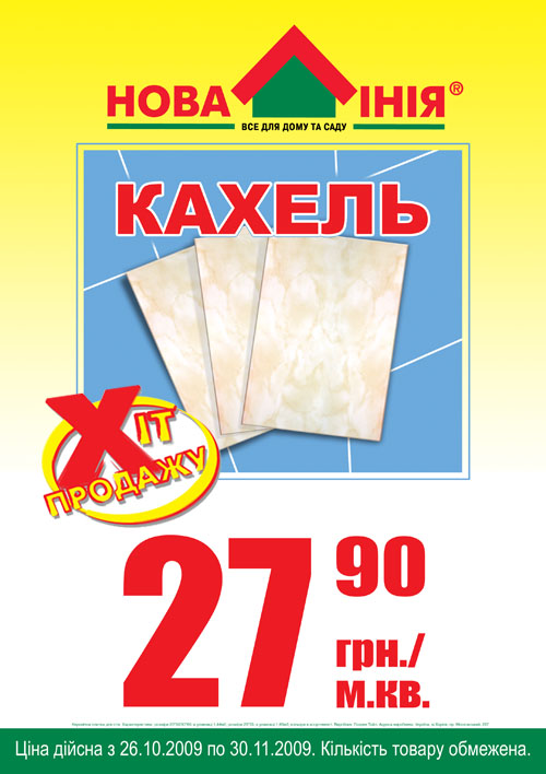 Национальная сеть декоративно-строительных гипермаркетов «Новая Линия» представляет хит сезона плитку настенную ТМ Golden Tile по символической цене 27,90 гривен за метр квадратный.