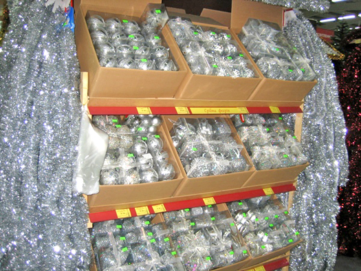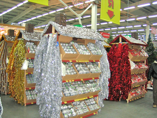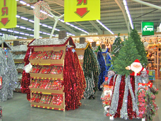 Двери наших гипермаркетов гостеприимно открыты для Вас. Здесь Вы найдете все необходимое для создания радостной и праздничной атмосферы в Вашей квартире, офисе, магазине, загородном доме и т.п. Коллекции новогодних игрушек и украшений порадуют даже самого привередливого покупателя. Украшения с изображением тигра – обязательный атрибут нового года, начните покупки именно с него. Символ 2010 года обязательно принесет счастье в Ваш дом.