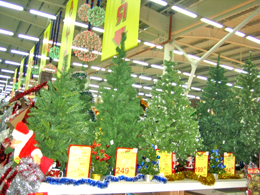 Зеленая красавица - елка всегда была главным украшением новогодних праздников. Торговый зал заполнен более 70 видами живых и искусственных, больших и маленьких, для дома и для сада вечнозеленым главным атрибутам новогодних праздников.