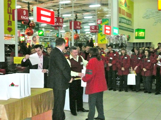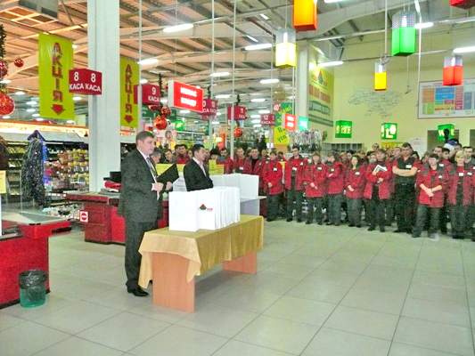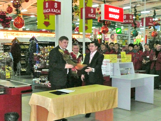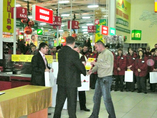 Торговый центр в Кременчуге за этот короткий срок показал высокий уровень работы. И все это благодаря персоналу, который в нем работает. На утреннем собрании, директор гипермаркета Киблицкий Олег поздравил всех присутствующих от имени главы правления АО «Новая Линия» Олега Шандара и от себя лично. После слов благодарности всем сотрудникам были вручены грамоты и памятные подарки.