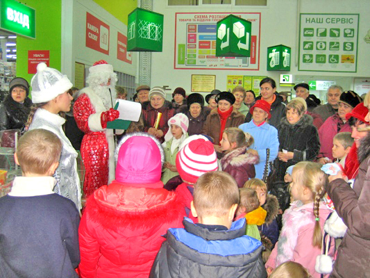 Дед Мороз и Снегурочка развлекали взрослых и детей веселыми конкурсами и викторинами. Победители получили призы, и самое главное, отличное праздничное настроение. Всем деткам Дед Мороз раздавал сладости, а малыши охотно рассказывали новогодние стихотворения.