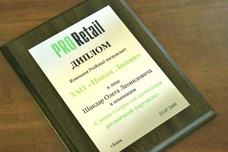 В этом году Государственный комитет по вопросам регуляторной политики и предпринимательства наградил Главу Правления АО «Новая Линия» Почетной грамотой за вклад в реформирование национальной экономики, развития предпринимательства и развитие рыночной инфраструктуры. Министерство экономики Украины за достижение в труде. К грамотам от Украинской Торговой ассоциации были представлены ТОП-менеджеры компании. Сотрудники Компании также были отмечены почетными грамотами Администрации Дарницкого района за особый вклад в создание духовных и материальных ценностей. Вклад «Новой Линии» в развитие социальной инфраструктуры отмечают и регионы, что отмечено большим количеством грамот и премий.