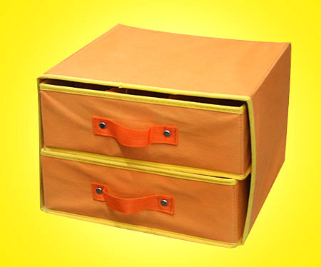 Изготовлены кофры и тумбы из прочного воздухопроницаемого нетканого материала. Цвета: синие и оранжевые.