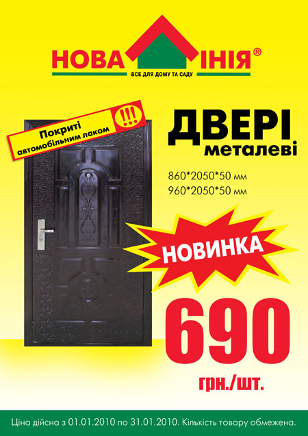 В первые в Украине, только в национальной сети декоративно-строительных гипермаркетов «Новая Линия», Вы можете приобрести двери универсальные по цене 690 гривен за 50мм и 840 гривен за 70 мм