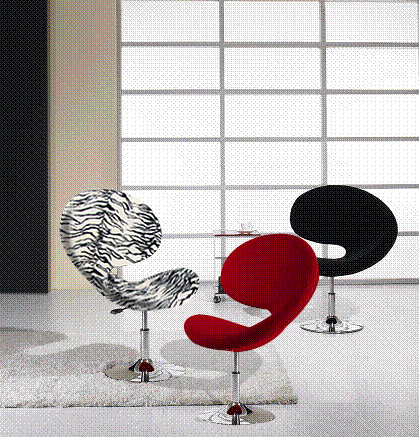 Преимущество кресла в том, что оно предназначено для оборудования зон отдыха в бытовых или общественных помещениях. Поддон кресла и подьемник изготовленны из металла, покрытого хромом. Под сиденьем находится пресованая фанера. В качестве прокладочного слоя использован синтепон. Обивка тканевая, трех цветов: красного, черного и под зебру.