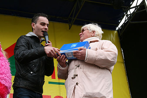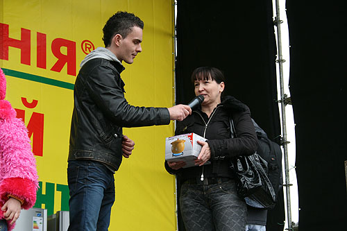 Розыгрыши призов проходят каждые 45 минут. Счастливые победители выходят на сцену за подарками.