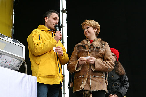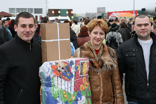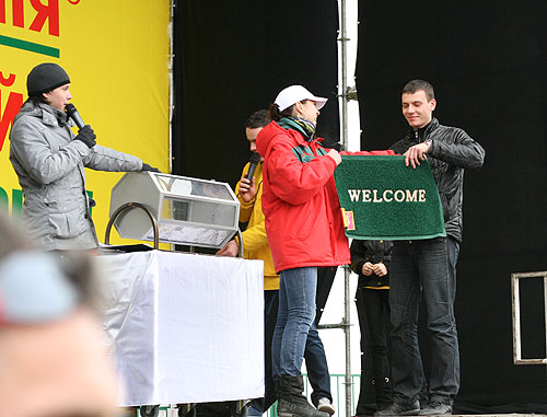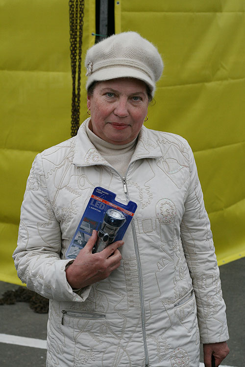 Оксана Калинова с семьей приехала из Тарханкута. Скупившись в гипермаркете, Оксана выиграла садовую качель. "-Большое спасибо Новой Линии за такой выбор товаров и за праздничную программу, а в довершении еще и такой приз выиграли. Теперь в нашем саду станет еще уютнее."