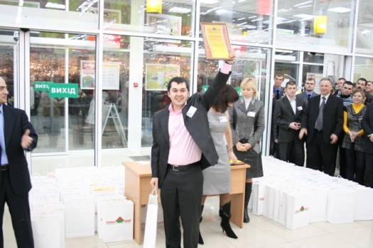После того, как ушли последние покупатели и двери торгового центра "Новая Линия" закрылись, состоялось награждение и поздравление всего коллектива торгового центра.