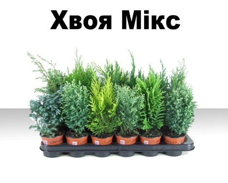 В комплект Хвоя микс входят туи и можжевельники в ассортименте.