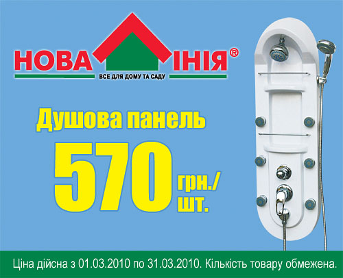 Национальная сеть декоративно-строительных гипермаркетов «Новая Линия» и ТМ «Мурани» предлагают Вам новинку уникальную душевую панель MURANI с функцией гидромассажа по цене 570 грн.