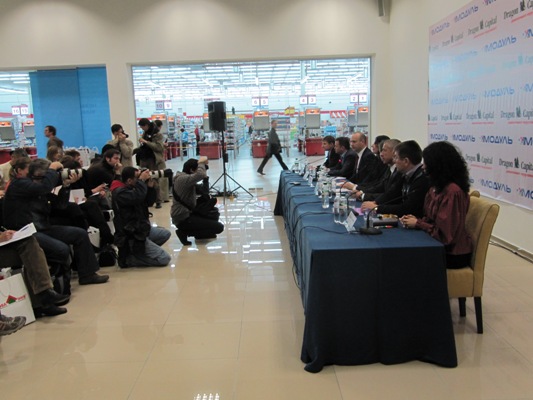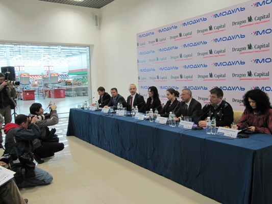 Первый вопрос был задан Олегу Шандару, как главному якорному арендатору ТЦ"Модуль"и стремительно развивающейся компании. Прессу интересовали планы компании, социальная политика и инвестиции.