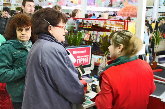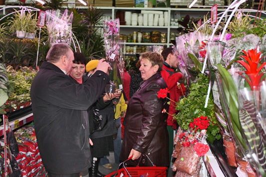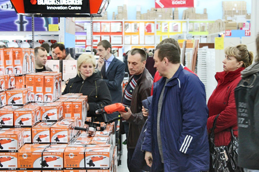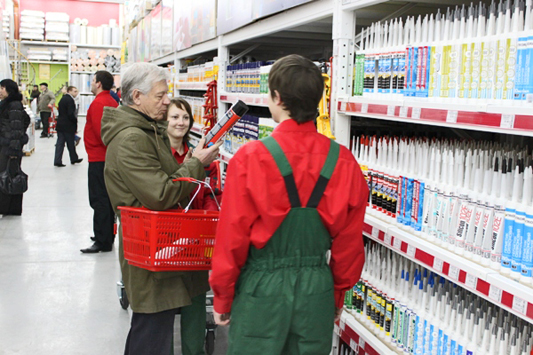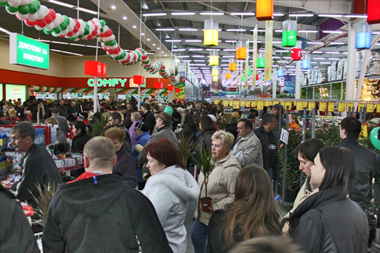 Полная парковка машин и заполненный покупателями торговый зал. Счастливые покупатели делают покупки, принимают подарки, строят планы по перевоплощению и усовершенствованию своих квартир и домов и просто хорошо проводят время! А на кассах покупателей так же ожидают сюрпризы. Каждый 50, 100, 150, 200 и т.д. получают ценные призы.