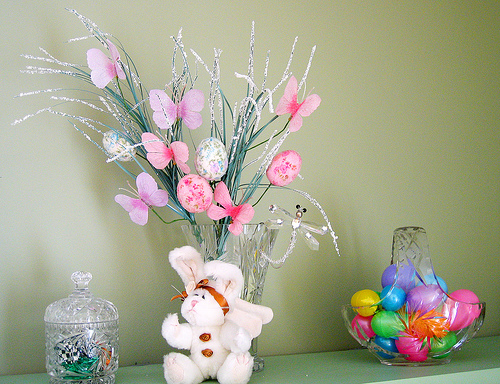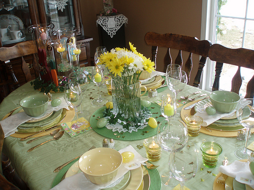 Чтобы красиво украсить дом и праздничный пасхальный стол вам понадобятся плетеные корзинки, подносы, блюда, свечи, пасхальные расписные яйца, кружевные или расписные скатерти, салфетки, искусственные и живые цветы и др.