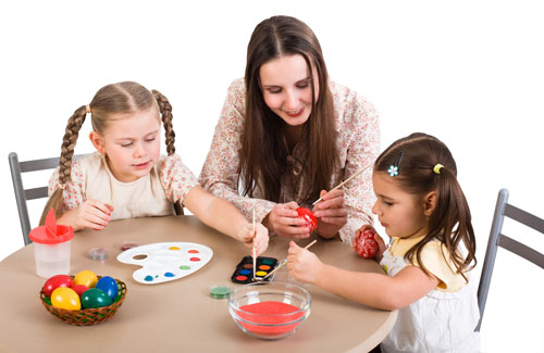 Чтобы в доме было празднично и красиво, можно сделать пасхальное панно, букет и раскрасить деревянные заготовки яиц. Подставки для пасхальных яиц изготовьте из проволоки, плотной бумаги и сильно накрахмаленной ткани. Попробуйте связать такую подставку крючком из хлопчатобумажных ниток, сильно подкрахмалить, а после расшить бисером и цветными бусинками.