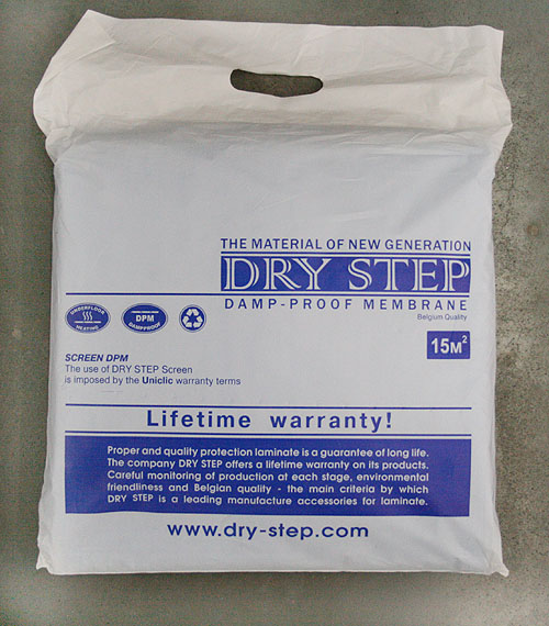 2. Гидроизоляция: ПВХ мембрана, производства DRY Step, цена от 142,2 грн. до 284,4 грн. Применяется для гидроизоляции ламината от основания.