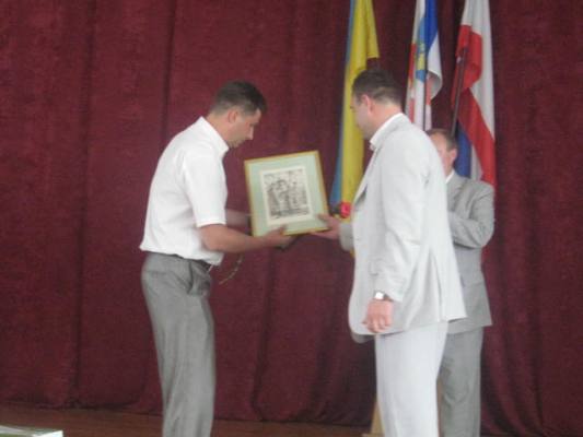На награждении Симферопольский городской голова Геннадий Бабенко поочерёдно приглашал на сцену, для вручения грамот, представителей лучших организаций. После того, как мер вручил почётную грамоту за заслуги в озеленении и поддержании порядка в микрорайоне, на сцену был приглашен директор торгового центра «Новая Линия» Симферополь Александр Валерьевич Галай.
