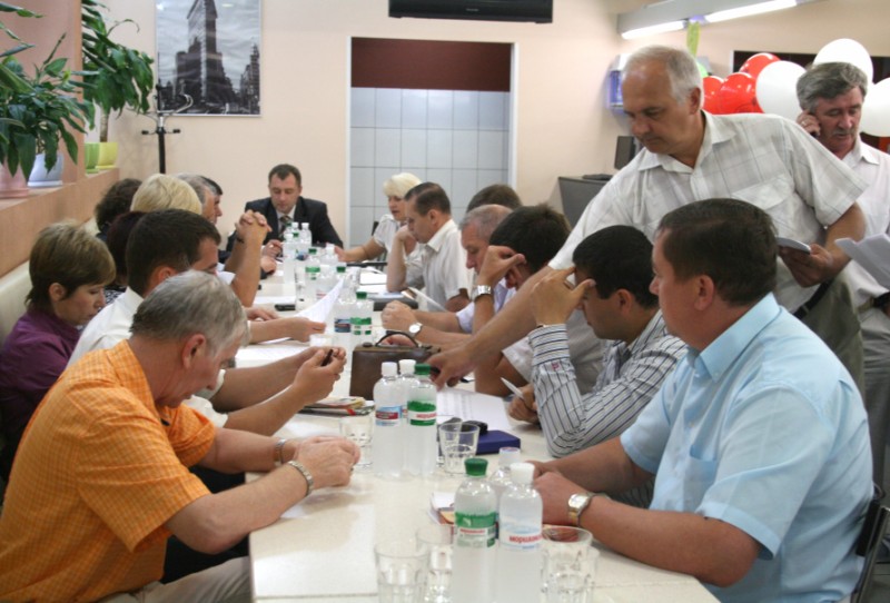 министр строительства и архитектуры АРК Николов В.И.; заместитель министра экономики АРК Кривенко О.П.; директор ТЦ «Новая Линия» Галай А.В., а также руководители супермаркетов «Фуршет», «Сильпо», «Рейнфорд» и представители крымских производителей (заводы «Фиолент», «Сантехпром», «Крымжелезобетон» и «Крымпласт»).