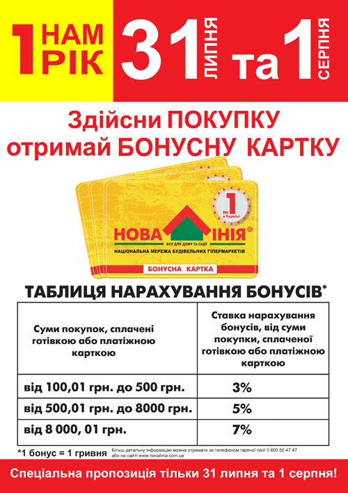А каждый, кто совершит покупку от 100 грн., станет членом клуба «Новая Линия»! Накопительная бонусная карточка в подарок!