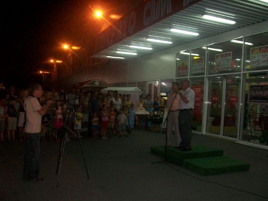 На парковке была установлена мини сцена, где звучали музыка и поздравления. Завершился праздничный вечер фейерверком, после которого довольные покупатели вернулись в свои дома с покупками и отличным настроением!