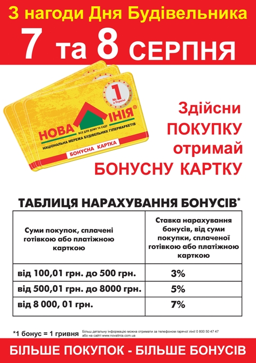 Ежегодно, во второе воскресенье августа, Украина празднует День строителя. Национальная сеть декоративно-строительных гипермаркетов «Новая Линия» поздравляет Всех с праздником. Желаем Вам легкого и быстрого ремонта, креативных идей, работу только с высококачественными материалами, и наслаждение от заключительного результата. Наша компания делает все, чтобы Ваше строительство и ремонт проходили как можно комфортнее и качественнее, а так же с экономией Ваших финансов.