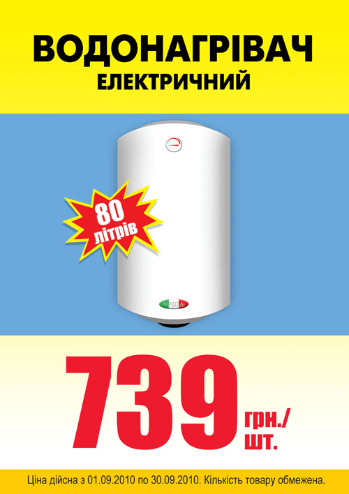 Национальная сеть декоративно-строительных гипермаркетов «Новая Линия» представляет водонагреватель AQUILA с оригинальным итальянским дизайнером по цене всего 739 гривен